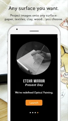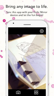 Transformă imagini digitale în artă cu Etchr Mirror App! Sincronizează aplicația cu Etchr Mirror și încarcă orice imagine de pe dispozitivul tău sau de pe internet. Proiectează imaginea virtuală pe o suprafață de desen, pictură sau colorat. O experiență creativă nelimitată, ideală pentru orice artist.