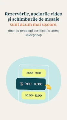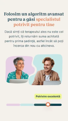 Știm că succesul terapiei depinde de conexiunea autentică dintre tine și specialist. De aceea, am creat un chestionar intuitiv și inteligent, conceput special pentru a identifica cel mai potrivit terapeut pentru nevoile și preferințele tale unice. Acest instrument te ajută să găsești pe cineva cu care poți comunica deschis și sincer, construind o relație terapeutică solidă și eficientă. Mai mult, cu **Hedepy**, flexibilitatea este la îndemână: poți programa prima ta ședință chiar și pentru a doua zi, participând la discuție din confortul familiar al propriei case, fără bătăi de cap legate de deplasare sau programări rigide.