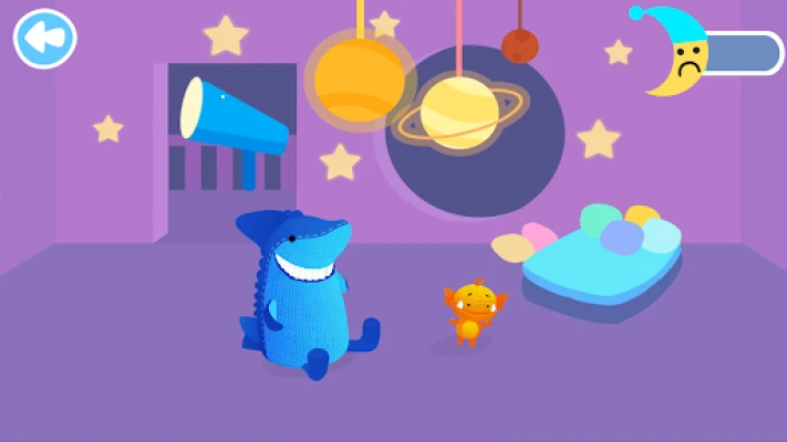 Lăsați-vă ghidați într-o căsuță fermecată din copac, unde Atlas și Moka Mera își petrec timpul în patru camere pline de surprize. Fiecare colțișor al căsuței devine un spațiu de învățare naturală, deoarece nevoile personajelor – fie că este vorba de foame sau oboseală – îi invită pe copii să exploreze activitățile specifice fiecărei încăperi. Dacă micuțul monstru Moka Mera folosește o limbă necunoscută, Atlas rechinul este mereu pregătit să intervină și să ofere explicații în limba maternă a copilului, asigurând o înțelegere fără efort și un progres constant. Aici, fiecare joc și fiecare interacțiune este concepută pentru a facilita achiziția limbajului într-un mod intuitiv și distractiv.