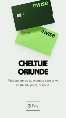 Eliberează-ți potențialul financiar global cu Wise, soluția inteligentă pentru gestionarea banilor tăi la nivel internațional. Spune adio taxelor ascunse și cursurilor de schimb nefavorabile. Cu Wise, te bucuri de cursul real de schimb al pieței, același pe care îl găsești pe Google, asigurându-te că obții întotdeauna cea mai bună valoare. Alătură-te unei comunități de peste 16 milioane de persoane și afaceri care au ales deja transparența și eficiența pentru a-și muta, trimite și cheltui banii rapid și fără griji, în peste 160 de țări și cu acces la 40 de monede. Descoperă libertatea de a gestiona finanțele transfrontaliere cu ușurință.